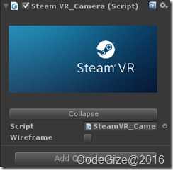 VR摄像机,主要功能是将Unity摄像机的画面进行变化,形成Vive中的成像画面