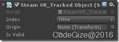 在Origin物体上添加2个子物体代表Vive的2个手柄,增加SteamVR_TrackedObject,Index设置为None