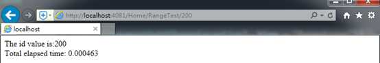 上面示例中删除了FilterTest动作方法上的过滤器(已经注释的部分),因为下面实现的(重写的)动作方法已经实现了这些功能。下面看看效果(导航地址:/Home/RangeTest/200,该URL的目标是RangeTest动作,但它不会发生在演示HandleError过滤器时可能出现的那种异常):