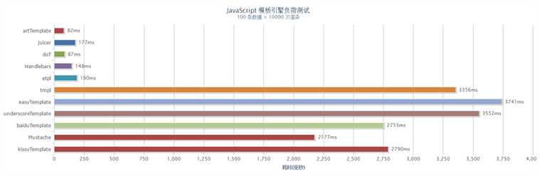 artTemplate是新一代的javascript模板引擎,若采用拥有V8引擎的chrome浏览器进行测试,其渲染性能甚至能达到知名模板引擎Mustache的20倍以上以及模板引擎tmpl的40倍以上,测试截图如下: