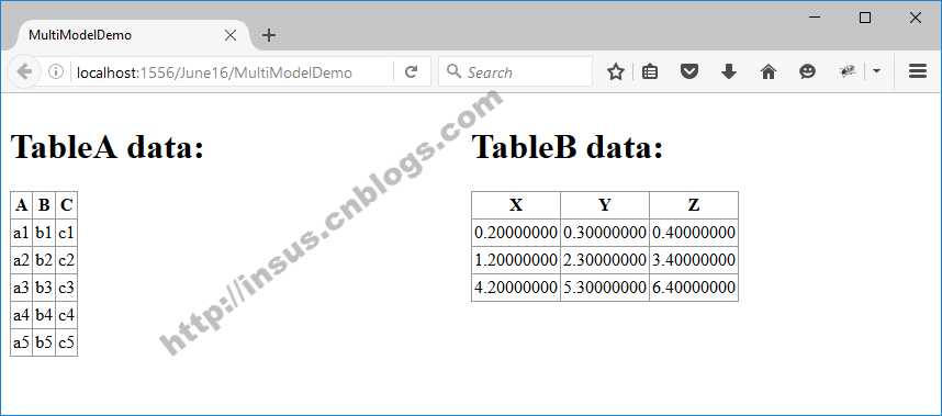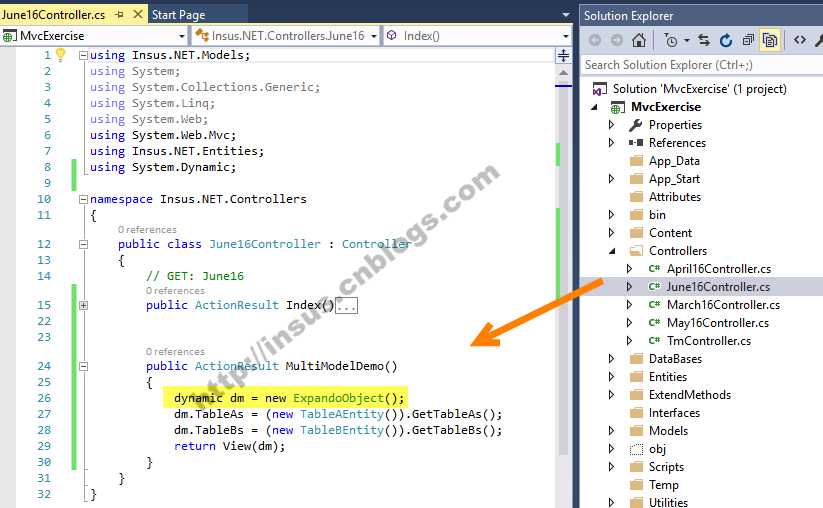 昨天Insus.NET有实现《使用ViewModel来实现多个Model传送至视图》http://www.cnblogs.com/insus/p/5594134.html 那今天Insus.NET想使用另一种方法来实现这个传递多个model至视图中去。ExpandoObject动态对象。一些数据还是来自前一篇。在控制器实现: