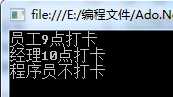 using System; using System.Collections.Generic; using System.Linq; using System.Text; namespace 多态 { class Program { static void Main(string[] args) { /* 练习: 真的鸭子嘎嘎叫 木头鸭子吱吱叫 橡胶鸭子唧唧叫 */ RealDark rrd = new RealDark(); WoodenDark wd = new WoodenDark(); RubberDark rd = new RubberDark(); Dark[] d = { rrd, wd, rd }; for (int i = 0; i < d.Length; i++) { d[i].Bark(); } Console.ReadLine();/* 练习: 经理10点打卡 员工9点打卡 程序员不打卡 */ Employee em = new Employee(); Manager ma = new Manager(); Programmer pr = new Programmer(); Employee[] ee = { em, ma, pr }; for (int i = 0; i < ee.Length; i++) { ee[i].daka(); } Console.ReadLine();