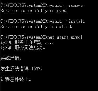 4.1、如果之前安装了MySQL,需要卸载MySQL,在命令行中执行:mysqld --remove