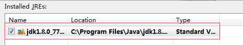 ②配置jdk:Java-->Installed JREs-->Add,找到你的JDK,Finally就行,最后可以看到一个JDK被添加进来了