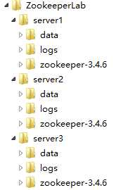 2、创建ZookeeperLab文件夹目录,模拟部署3台Zookeeper服务器集群,目录结构如下。