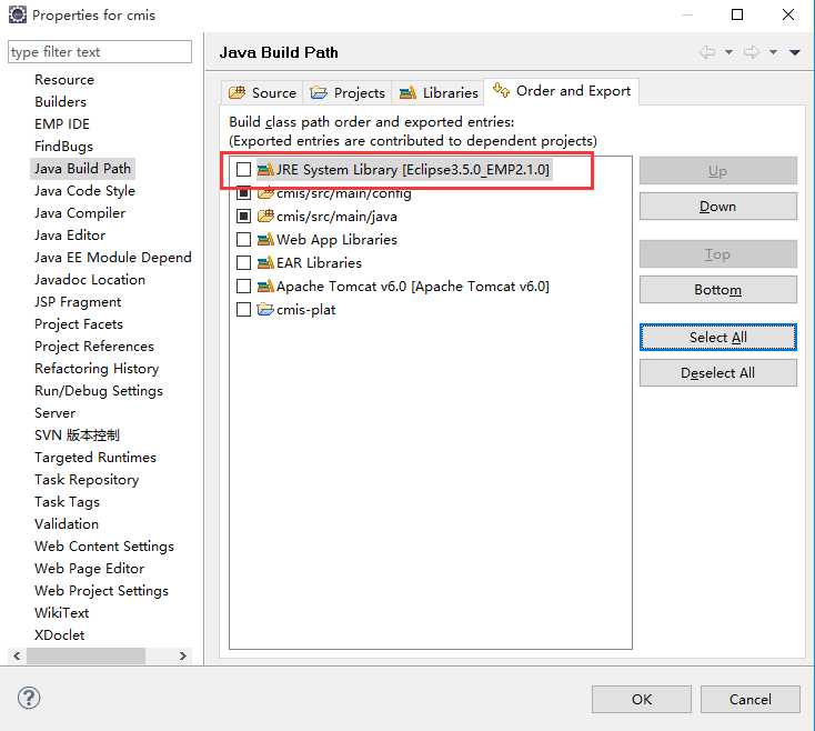 将Project->Properties->Java Build Path->Order and Export->JRE System Library移动到顶部(Top)