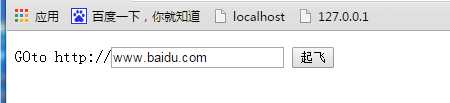 <!DOCTYPE html> <html> <head> <meta charset="utf-8" /> <title></title> </head> <body> <form> <p> <label for="url" center;">GOto</label> http://<input type="text" id="url" name="homepage" list="homepages autofocus"/> <datalist id="homepages"> <option value="www.geogle.com"></option> <option value="html5.komplett.cc/welcom"></option> <option value="slashdot.org"></option> <option value="wired.com"></option> </datalist> <input type="submit" onclick="window.location=‘http://‘+document.getElementById(‘url‘).value;return false; "name="" id="" value="起飞" align="center"/> </p> </form> </body> </html>