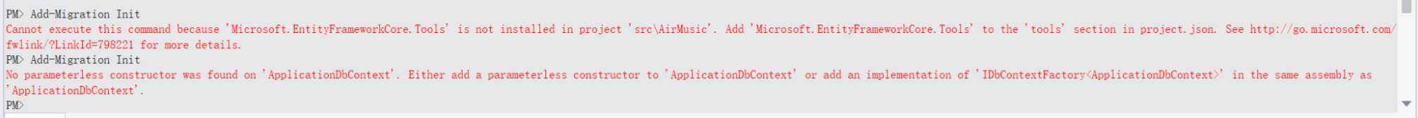 记得去年第一次做项目,用了asp.net mvc5,因此也第一接触了EntityFramework(版本是EF6)。 现在打算用asp.net core来完成一个项目,air music是学习asp.net core时新建的demo项目,以后学习core中遇到的一些问题一般会从这个项目产生,今天这篇文章是在migration初始化数据库时发生的一些问题。