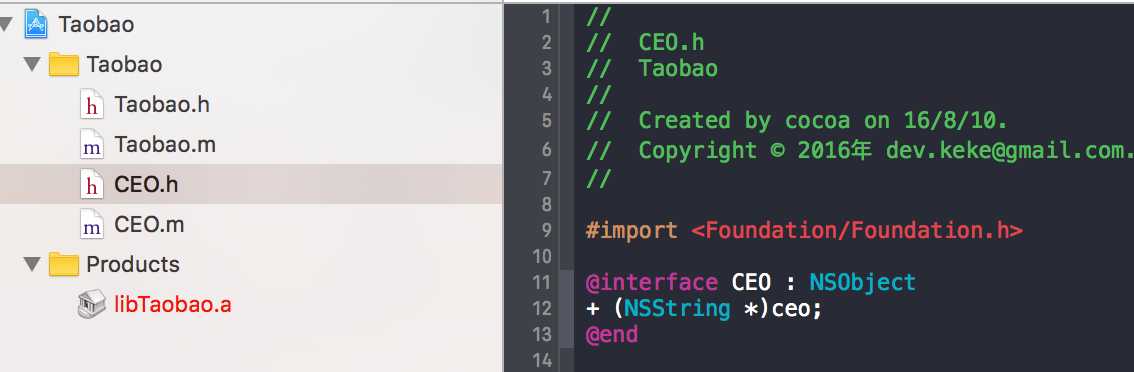 静态库libTaobao.a 里面编译有CEO.m 文件并且有 ceo方法