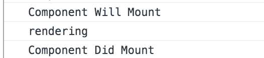 import React from ‘react‘; import ReactDOM from ‘react-dom‘; export default class App extends React.Component { constructor(){ super(); this.state = { val: 0 } } update(){ this.setState({ val: this.state.val + 1 }) } componentWillMount(){ console.log("Component Will Mount"); } render() { console.log("rendering"); return ( <div> <button onClick={this.update.bind(this)}>{this.state.val}</button> </div> ) } componentDidMount(){ console.log("Component Did Mount"); } }