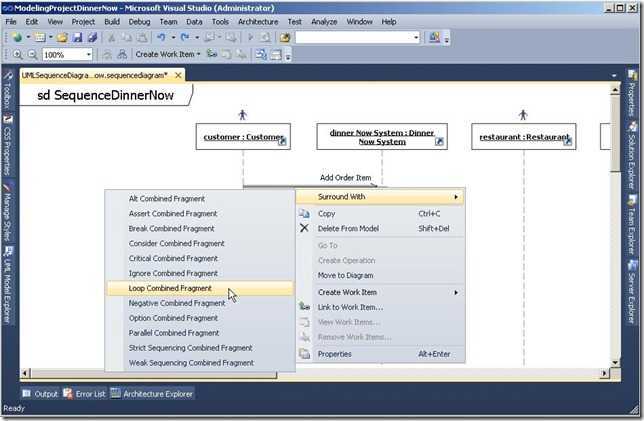 1. 在解决方案浏览器中的ModelingProjectDinnerNow解决方案下,双击类图UMLClassDiagramDinnerNow.classdiagram,在设计界面中打开类图。