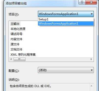 (2)在添加项目输出组中选择你创建的windows项目-选择主输出-确定,即可将项目添加到安装程序中