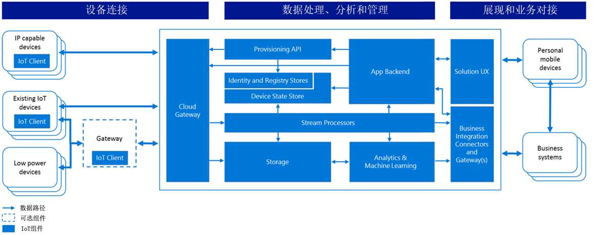 将所有设备连接到云,从这些设备接收大规模数据,以及管理这些设备的授权和限制。