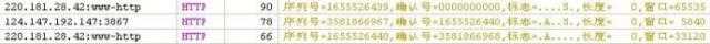 第一次握手:192.168.1.116发送位码syn=1,随机产生seq number=3626544836的数据包到192.168.1.123,192.168.1.123由SYN=1知道192.168.1.116要求建立联机;