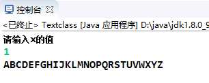 package com.homework.zw; //类Print部分 public class Print1 { int x; void output() { if(x==1) { for(int i =65;i<=90;i++) { char a =(char) i; System.out.print(a); } } else if(x==2) { for(int i =97;i<=122;i++) { char a =(char) i; System.out.print(a); } } } }