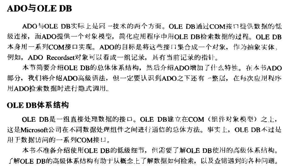 只不过ADO的API好用,大家更加熟悉而已,其实,最后还是通过OLE DB来实现的。