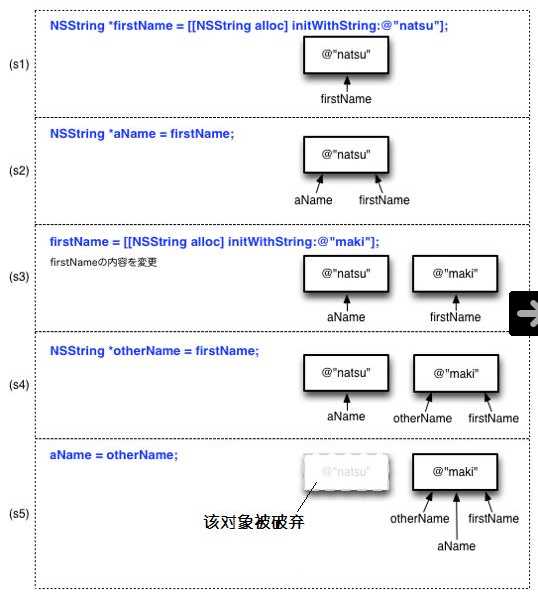 (w1)与强参照方式同样,firstName作为字符串对象@”natsu”的持有者存在。即是该NSString类型对象的Strong reference。