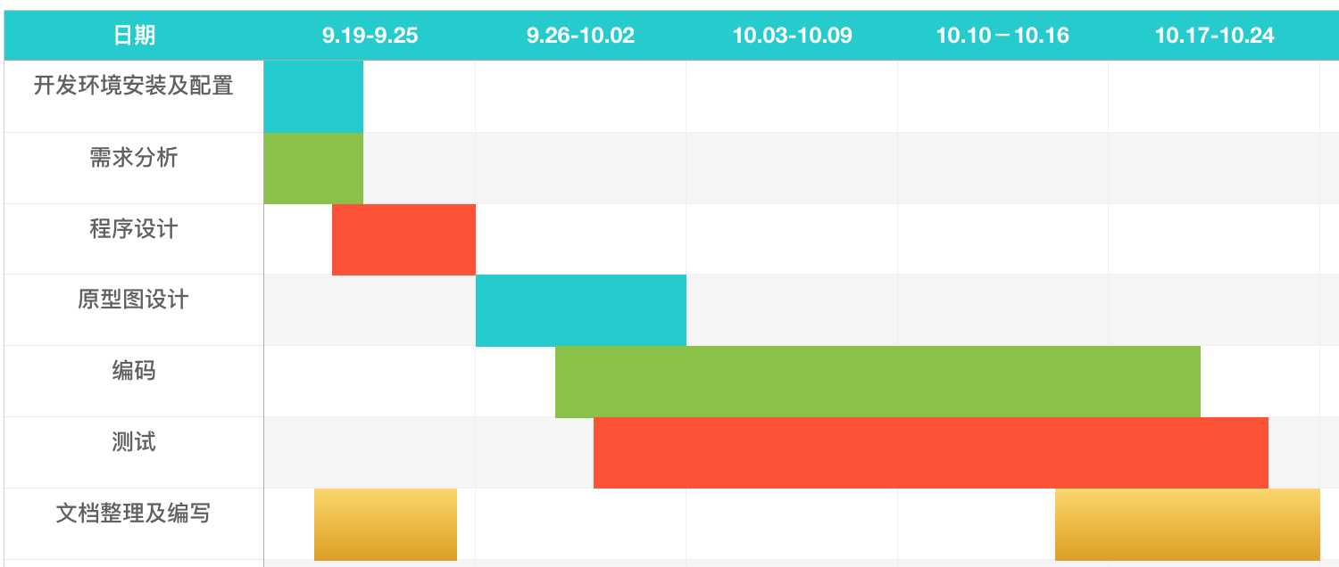 预计开发时间为5周,具体工作时间安排见下面的甘特图。
