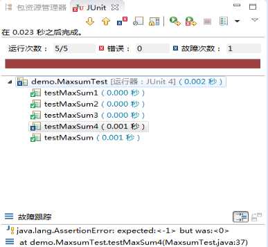 以下是我对之前求数组最大子序列的和代码进行单元测试的结果如表1所示