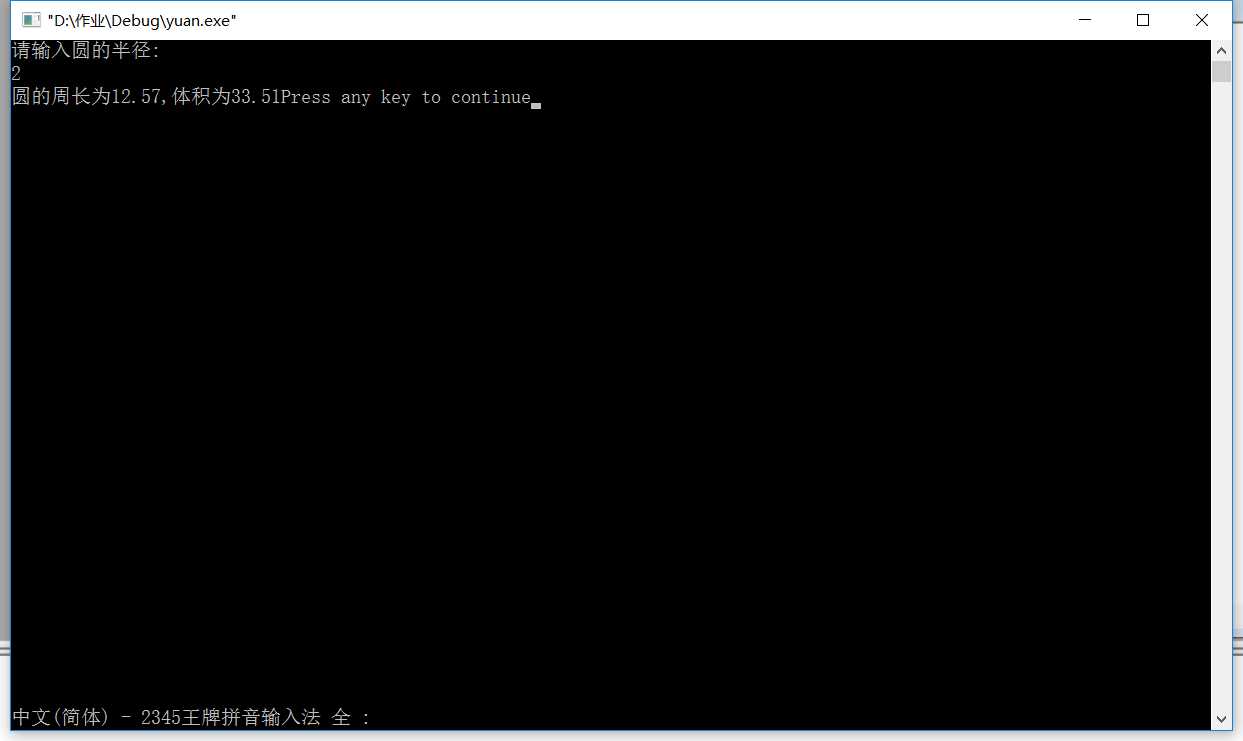 实验要求:(学习使用符号常量)输入圆的半径,输出圆的周长和绕直径形成的球体的体积,结果保留两位小数。