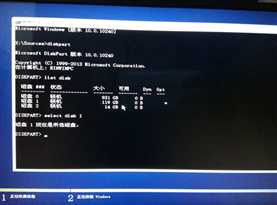 a) 按shift+fn+f10,在打开的界面中输入diskpart,然后选中需要操作的磁盘,这里选中磁盘1,如下所示