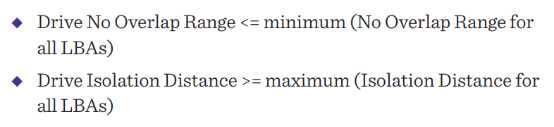 每一个LBA都有两个明显的参数:No overlap range 和isolation distance。No overlap range是连续的不重复写的LBA的最小距离;isolation distance是可能存在重叠的LBA中的最大距离:如图2所示。
