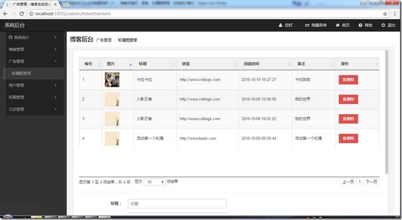 四、博客系统广告轮播图管理实现