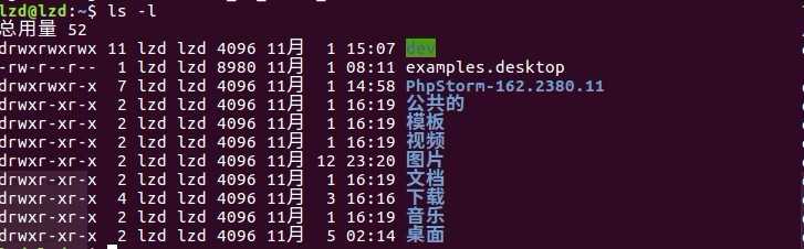 ls -l 权限 引用计数 所有者 所属组 文件大小 最近修改时间