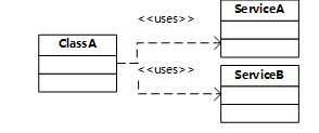 我们可以看到ClassA直接引用了其依赖的两个服务ServiceA和ServiceB,这说带来的坏处不言而喻,当然有人会说:“我会引用服务的接口而不是服务的实现”,Good,但无论怎样,服务的具体实现类还是要被引用到的,而这种引用散乱地分布在系统各处,而你自己不得不去维护这些服务的生命周期,更可怕的是你所使用的服务必须是在编译时便存在的。