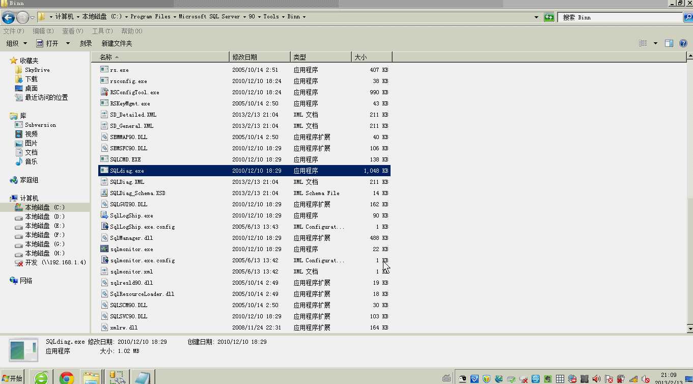 SQLDiag工具默认安装在:C:\Program Files\Microsoft SQL Server\90\Tools\Binn