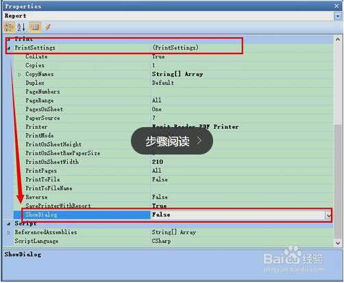 将Report结点的PrintSettings中ShowDialog属性设置为False