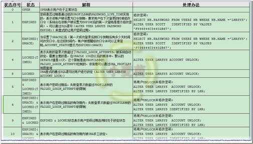 在Oracle中,若用户的密码变为锁定状态(LOCKED、LOCKED(TIMED))则DBA直接执行ALTER USER用户名 ACCOUNT UNLOCK就可以解锁了。但是,如果用户的状态变成过期状态(EXPIRED、EXPIRED(GRACE)),则DBA必须要更改用户的密码账户才能重新使用。但有些时候,因为各种原因并不知道原密码的明文是什么,这时候可以有如下2种办法来更新密码。