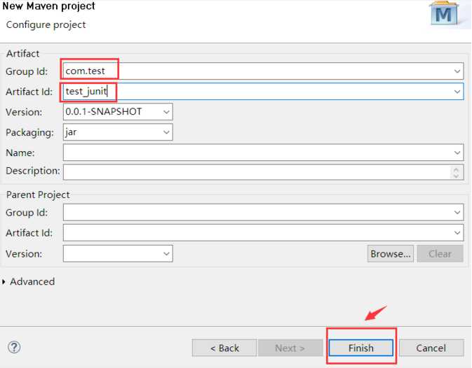 在new maven project中填写group id ,artifact id(文件夹名字),其它默认或者不填,然后finish