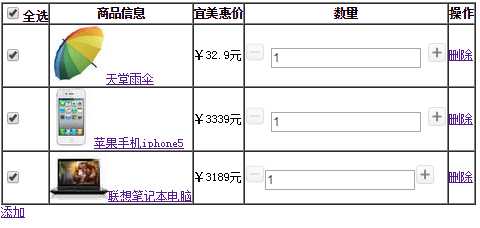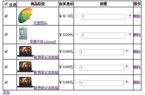 点击全选----则商品内容全部选中 取消选中全选则全部取消 代码天蓝色部分效果如图