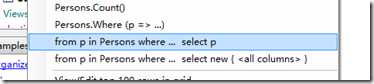 代码编辑窗口出现如下代码,这是一个比较直观的Linq语句模板
