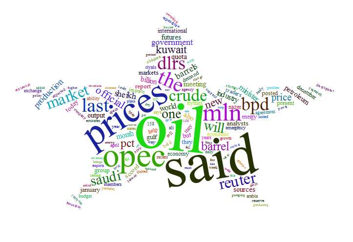 wordcloud2(demoFreq, size = 1,shape = ‘star‘)