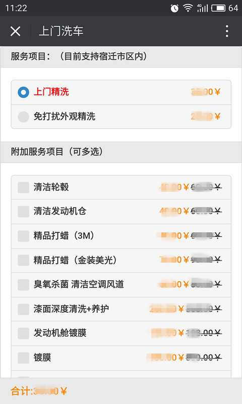 选择服务项目,服务时间,填写车牌,地址,电话,付款。(完成后会有电话联系你,拿钥匙洗车)。