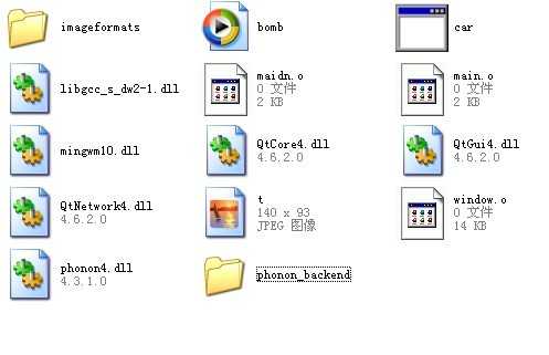 说完图片,字体,那么声音怎么加呢,看到phonon_backend这个文件夹了吧,这就是声音啊!首先解释下qt的声音吧,在qt中是有两种办法来加声音的,最简单的就是用QSound,