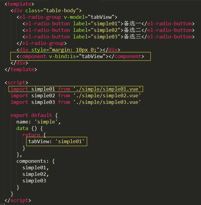 Vue 自身保留的 <component> 元素,可以将组件动态绑定到 is 特性上,从而很方便的实现动态组件切换