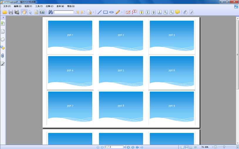 啦,点击:文件--打印,选择实际的物理打印机。(如果打印机支持双面打印的话,设置打印机属性为双面打印)。这样一页打印多张ppt且铺满页面的打印效果就粗来啦,效率和环保兼顾啦啦啦啦