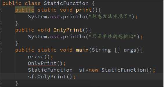 b.静态方法中可以调用静态方法,但是不可以调用非静态方法,和上面的变量是一样的,创建对象访问非静态方法