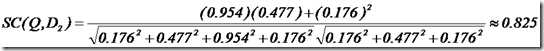 同样我们把查询语句看作一个简单的文档,也用向量来表示。