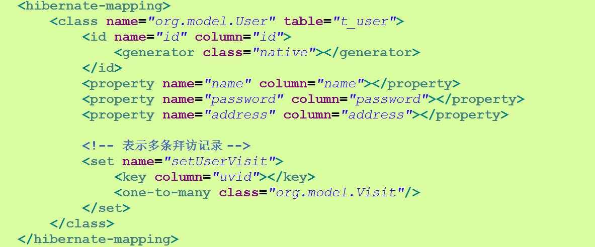- 在用户映射文件中表示所有拜访记录,使用set标签