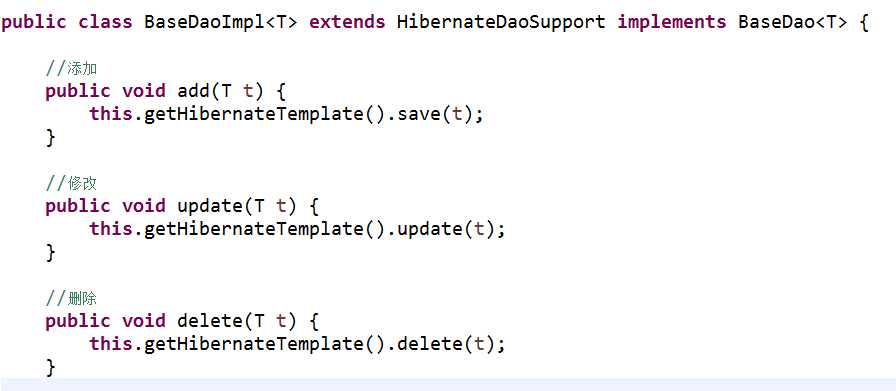 这样统一的功能就由basedao进行实现,继承basedaoimpl类,就可以使用基本的增删改查操作,从而减少了大量的代码