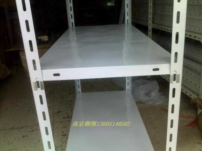1、普通安装,把层板放到中间层自己想要放的位置,一般情况是数角钢上面的空来对应每层板的位置。然后在板的4个角对应角钢的空,每个角用2个螺丝对孔拧紧。(注意:螺丝拧紧的时候,除了最上面的层板需要靠在角钢空的最上面,其他中间层和底层都要把板推到角钢孔的最下面)