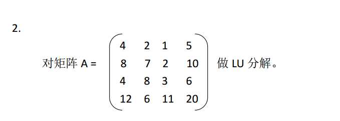 程组。即 Ax=b ? LUx = b ? Ux= L?1b,由U为上三角矩阵,而后回代即可求出原方程的解。