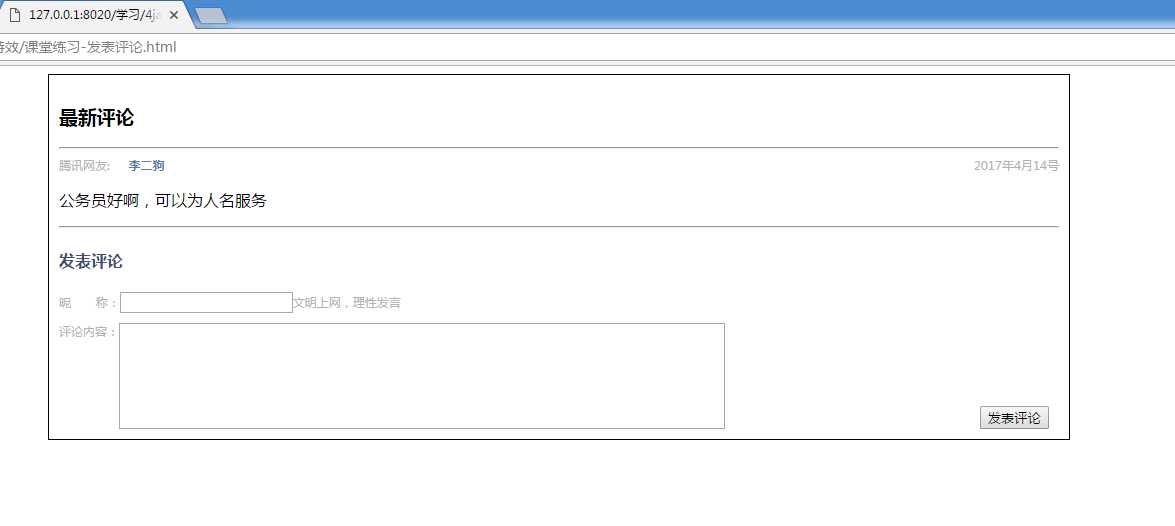 昵 称:<input type="text" id="name"/>文明上网,理性发言