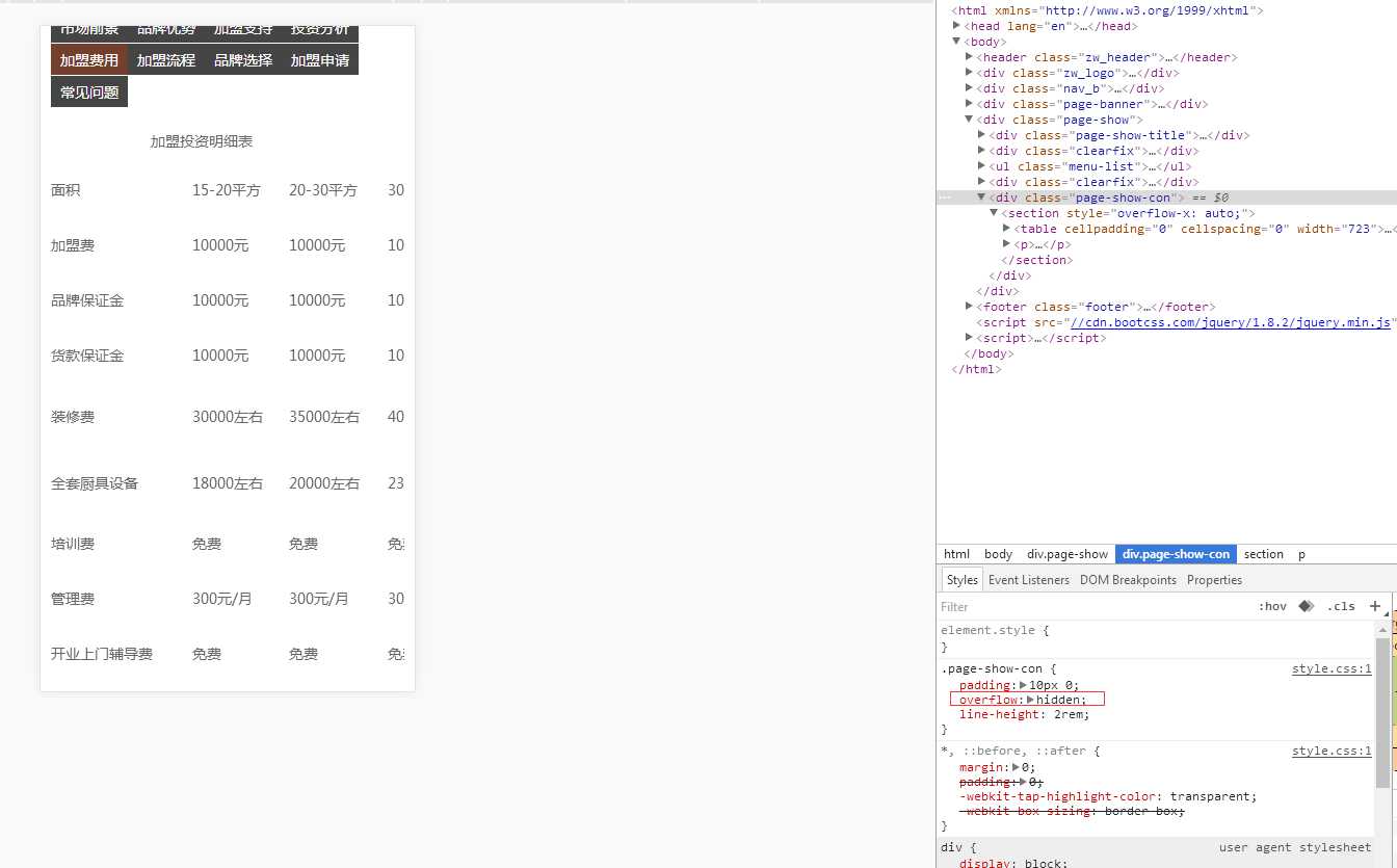 手机页面内容超出屏幕宽度时实现可拖拉滑动效果