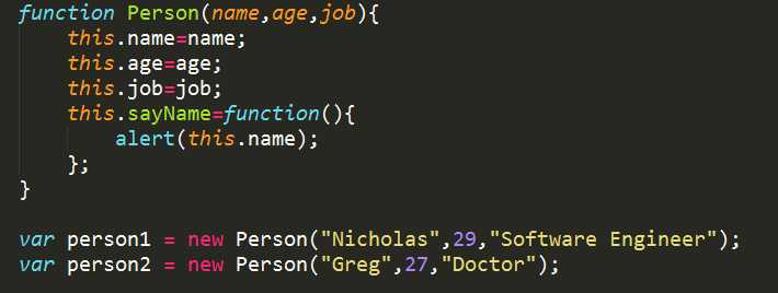 这个例子中,person1和person2分别保存着Person的一个不同的实例。这两个对象都有一个constructor(构造函数)属性,该属性指向Person: