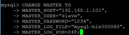 参数解释:MASTER_HOST : 设置要连接的主服务器的ip地址